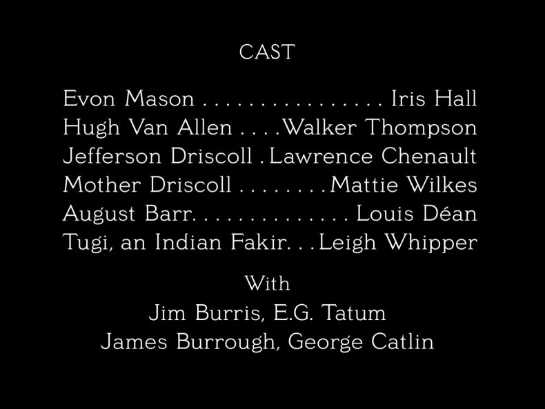 Von diesem theoretischen Einschub kehre ich zurück zu filmischen Zwischentiteln früher Schwarzer Kinematografien. Im Gegensatz zu den meist äußerst spärlichen Angaben in Anfangs- und/oder End-Credits wie in TWO KNIGHTS OF VAUDEVILLE wird in manchen Filmen deren Besetzung innerhalb der Zwischentitel angegeben. In THE SYMBOL OF THE UNCONQUERED (USA 1920) etwa wird der Cast auf diese Weise nach und nach offengelegt (Abb. 2). Dies läuft sowohl der Listenförmigkeit von Credits zuwider als auch ihrer Verortung an den Rändern des Films. Wie bei vielen der (sehr wenigen) erhaltenen Filme des frühen Schwarzen Kinos ist die Faktenlage zur Besetzung im Fall von TWO KNIGHTS OF VAUDEVILLE brüchig: In der einzigen erhältlichen – 2016 veröffentlichten – Fassung gibt es im Film selbst keinerlei Angaben zum Cast, nicht einmal zur Crew. Zu konstatieren ist hier also die Abwesenheit audiovisueller Besetzungslisten (wie in heutigen Vor- und Abspannen gängig) sowie entscheidende Leerstellen.