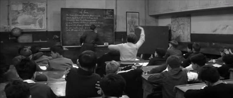 Beide Filme beginnen im Klassenzimmer, wo sich ein Kind dem Unterricht verweigert. Sie setzen ein mit einem Blick, der abschweift. In LES QUATRE CENTS sehen wir über die Schulter eines Jungen, der erst in ein Schulheft schreibt, dann ein Bild hervorholt. Der Schwenk folgt dem Bild, das von Bank zu Bank weitergereicht wird, ein Schüler beginnt es anzumalen, bis die Stimme des Lehrers aus dem Off zur Ordnung ruft.