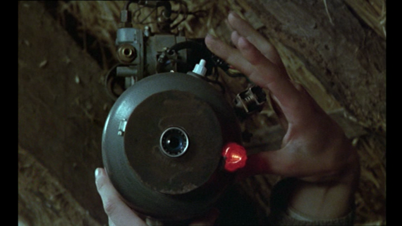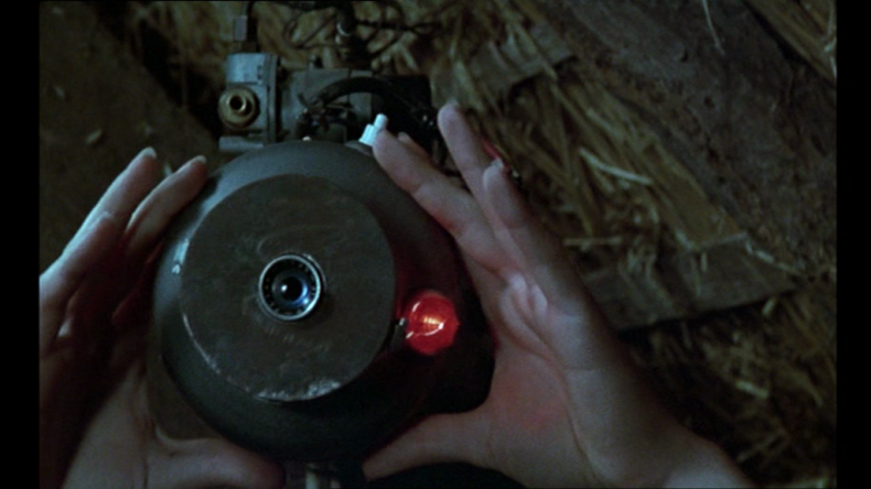 Vielfach wurde diskutiert, dass der bewegte Rotor mit den winzigen Figuren in rechteckigen Kästen an einen Filmstreifen oder eine Wundertrommel erinnert und damit auf die Herkunft des Films aus der Unterhaltungskultur des Jahrmarkts verweist. Dabei zeigt sich auch hier eine Abweichung vom Kontrollblick: Zunächst sind die Menschen im Rotor aus der sicheren Distanz des innerfilmischen Publikums, wie Insekten unter dem Mikroskop zu sehen. Dann wechselt die Kamera in die Perspektive Antoines. Im Vorbeiflitzenden verschwimmt die Aufnahme, der lustvolle Kontrollverlust überträgt sich kurzzeitig auf die Filmzuschauer*innen, deren Blick den Halt im Bild verliert. Betrachtet man den Rotor als Repräsentaten des Kinos, so werden hier zwei Zuschauerhaltungen gegenübergestellt: ein distanzierter, wissenschaftlicher oder voyeuristischer Blick oder ein lustvolles Schauen, das körperlich involviert ist. Dass Truffaut sich in einem Cameoauftritt unter die Menschen im Rotor mischt, zeigt die Parteinahme für eine Kinoerfahrung, die sich der Macht des Kontrollblicks entzieht. Er tritt für eine Regiehaltung ein, die sich auf die Seite seiner Darsteller schlägt, indem sie sich mit ihnen dem Risiko des Kontrollverlusts aussetzt. Wie nun verhält es sich mit LA DRÔLESSE – der keine expliziten Verweise auf das Kino enthält? In LA DRÔLESSE richtet sich das Begehren der Jugendlichen auf das Fernsehen, mit dem der junge Mann François das Mädchen Mado zu sich nach Hause lockt. Wichtiger als der Fernseher, dem sie sich nur in einer Szene widmen, ist jedoch eine Videokamera, die François aus Altteilen montiert und in der Dachkammer, in der er Mado gefangen hält, aufbaut, um sie einzuschüchtern. Hier dringt die Filmapparatur, die Macht des Blicks, also buchstäblich in die Intimsphäre der Kinder ein und strukturiert ihre Beziehung zueinander. Die Videokamera fungiert als Stellvertreterin des männlichen Protagonisten. Wenn er nicht da sei, so droht er Mado, zeichne die Kamera alles auf, was sie tue. 18 Während er die Überwachungskamera montiert, zeigt eine Nahaufnahme sie mittig zwischen seinen Händen als handele es sich um sein überdimensioniertes Auge, das sich im Gegenschuss auf Mado richtet.