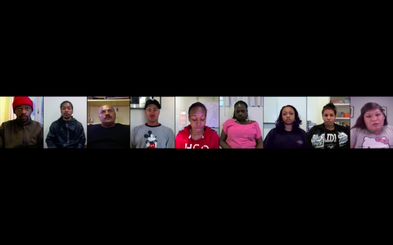 In Natalie Bookchins Film und Installation LONG STORY SHORT (2016) informieren Betroffene über ihre von Obdachlosigkeit geprägten Leben in der kalifornischen Bay Area. Bookchin hat 2011 und 2012, inmitten der Rezession, über 100 Interviews in Obdachlosenunterkünften und Bildungseinrichtungen geführt, die – als Video Testimonials montiert – wirken, als ob man mit den betroffenen Personen skypen würde. Dabei werden alternierend nacheinander und nebeneinander in Reihe oder übereinander halbnahe Gesichter von Interviewten montiert. Ihre Aussagen werden teilweise akustisch überlagernd gezeigt, dazu werden dann auch mehrere Gesichter eingeblendet.
