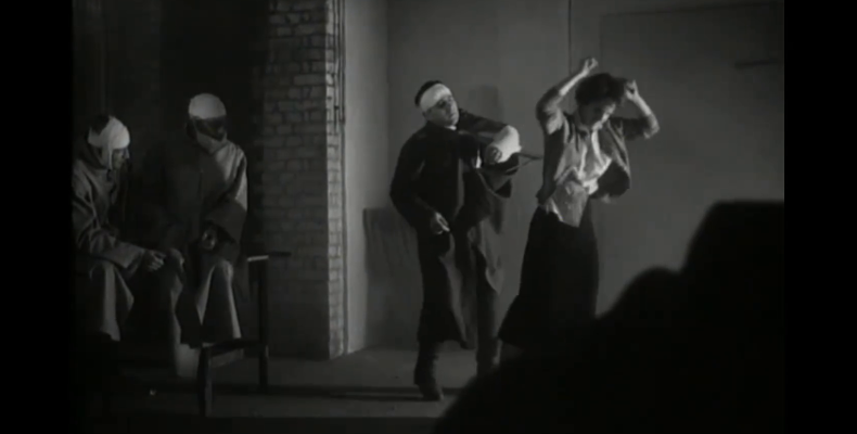 Film führt Führung vor. So etwa diese Tanzszene von 1955. In DER LETZTE AKT (D/A 1955) zeigt G.W. Pabst zehn Jahre nach Kriegsende ein Sittenbild der letzten Tage in Hitlers Berliner Bunker, gedreht in Wien. ‚Führerbunker‘ also. Mein Clip zeigt Bunkerkantinen-Leben im lichtlosen Chaos, darin der Tanz zweier Figuren, die nur in dieser Szene auftreten. Unmittelbar davor ist Oskar Werner als ostentativ ‚anständiger‘ Wehrmachtssoldat mit den Worten „Sagt nie wieder Jawoll“ gestorben; es folgt ein christlicher Belehrungsmonolog.
