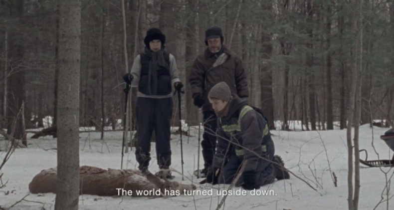 Denis Côtés Film GHOST TOWN ANTHOLOGY ist in der franko-kanadischen Provinz verortet, genauer einem 215-Seelen-Ort namens Irénée-les-Neiges, der bereits vor dem Einsetzen der Handlung als Geister-Dorf bezeichnet werden kann und im Laufe der Geschichte vollends zu einem solchen werden soll. Die geographische Abgeschiedenheit sowie die prekären Lebens- und Arbeitsbedingungen stellen die Bewohner_innen der Ortschaft permanent vor die Frage, ob sie in der Peripherie bleiben und sich der extremen Witterung und den schlechten Zukunftsperspektiven stellen sollen, oder ob sie, wie so viele vor ihnen, den Kampf aufgeben und in die nächstgrößere Stadt ziehen sollen. Der Konflikt von Zentrum und Peripherie, der hier deutlich wird, spiegelt sich auch in den Haltungen der Menschen wider, die, wie etwa die Bürgermeisterin deutlich macht, in einer trotzigen Verbissenheit münden, welche sich nur schwerlich als stolze Standhaftigkeit zu tarnen versucht, oder in gleichgültige Hoffnungslosigkeit.