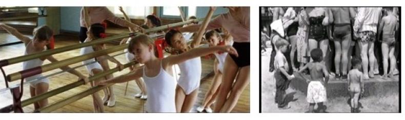 Gerade Kleinkinder verkörpern in Filmen – wie LA MATERNELLE (MUTTERHÄNDE, F 1933), LITTLE FUGITIVE (DER KLEINE AUSREISSER, USA 1953) oder INNOCENCE (BE/F/UK/JP 2004) – zudem häufig das Aus-der-Rolle-Fallen. Sie durchkreuzen damit Vorstellungen von der Identität eines Menschen, nicht nur in ihren bewegten Gesichtern, sondern auch mit ihren Körperbewegungen, und zwar vor allem dann, wenn sie sich Gesten oder Bewegungsformen, die ihnen (noch) nicht geläufig sind, wie zum Beispiel das Essen mit Messer und Gabel, Theater- und Sportspiele, Singen und Tanzen, anzueignen versuchen oder wenn sie durch Räume laufen, die für sie nicht geschaffen sind (Abb. 3–4). Dies gilt teilweise – wie in BLIND KIND (NL 1964) oder SIB (DER APFEL, IRN/F/NL 1998) – auch für ältere Kinder, deren Bewegungen durch Behinderungen beeinträchtigt sind, die daher ungewohnt erscheinen. Indem sich die Kameraführung den eigenwilligen Körperbewegungen der Kinder zuwendet, führt sie uns die Abweichung von habitualisierten Verhaltensmustern vor.