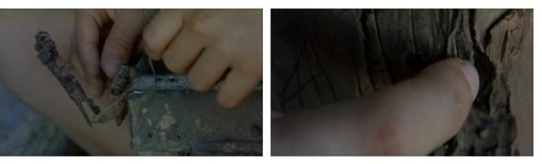 Haptische Visualität: Der Blick von Kinderprotagonist*innen richtet sich in Spielfilmen – wie PATHER PANCHALI (IN 1955), LE VOYAGE DU BALLON ROUGE (F/TW 2007) oder MUTUM (BR 2007) – häufig auf scheinbar nebensächliche, alltägliche Details. Gemessen an der narrativen Logik, an der Lebenswelt der Erwachsenen, möglicherweise auch an historischen Kontexten erscheinen diese Details als unwichtig. Dieser Fokus geht oft einher mit dem, was Laura Marks als haptische Visualität beschrieben hat (Marks 2000: 162ff.). Statt das Gezeigte im Blick zu erfassen und zu deuten, werden Tasterfahrungen angesprochen. Wir rücken in den körperlichen Nahbereich vor (Abb. 7–8). Die den Kindern zugeschriebene sinnliche Erfahrung wird als lustvolle Entgrenzung inszeniert, bringt aber auch eine besondere Verletzlichkeit mit sich. In Kindheitsfilmen werden somit nicht nur sämtliche Dimensionen des menschlichen Seins als verkörperte wahrnehmbar: Denken und Kommunizieren, psychische Vorgänge, Vermittlungsprozesse und die Imaginationen (vgl. Wilson 2005, Henzler 2018a). Die kindliche Wahrnehmung motiviert auch einen anderen Blick auf filmische Wirklichkeiten.