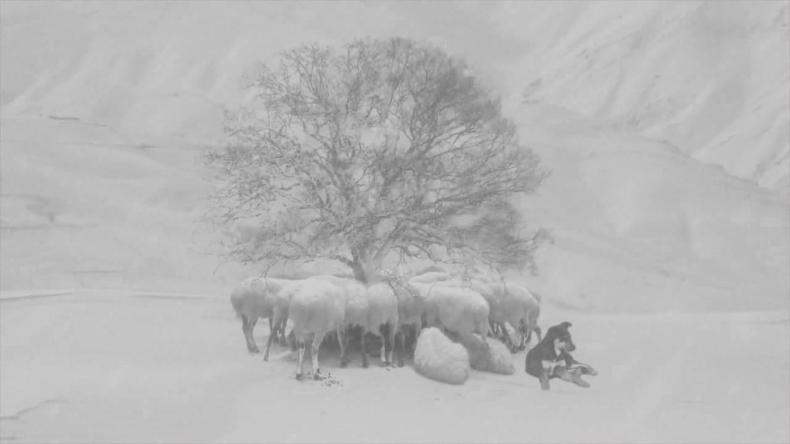Neben der Flora zieht sich die Fauna von Kiarostamis früheren Filmen wie ein roter Faden durch bis zu 24 FRAMES. Der frühe Kurzfilm BROT UND GASSE/NAN VA KUCHEH (IRAN 1970) ist die spannend angelegte Erzählung von einem offenbar streunenden Hund, der zu der List greift, Kinder so lange zu bedrohen, bis sie ihn mit Futter besänftigen. In der Koker-Trilogie kündigt sich das Vieh im Off durch seine Rufe an und wandert erst danach wie zufällig vor die Linse. Wie der kleine Junge in WO IST DAS HAUS MEINES FREUNDES? sind die Hühner, Hähne, Hunde, Ziegen und Kühe bummelnde und entschlossene Wandernde zugleich. Sie erinnern uns daran, dass ihre Existenz weit über die Welt der Kamera hinausgeht. Stets in Bewegung, scheinen die Tiere unbeirrt auf Ziele zuzustreben, die sich dem Menschen nicht erschließen – so ist es selbst bei der langsamen Schildkröte, die im Film DER WIND WIRD UNS TRAGEN vom Ingenieur auf den Rücken geworfen wird, wodurch ihr der weitere Pfad durchs Leben brutal versperrt ist. Noch vor der Titelnennung in UND DAS LEBEN GEHT WEITER fängt der kleine Sohn des Hauptprotagonisten mit der Hand eine Wanderheuschrecke, lässt sie aber wieder frei. In einem Gedicht schreibt Kiarostami: „Es schnellt und landet/Landet und schnellt/Die Heuschrecke/In eine Richtung die nur sie weiß“ (2004: 24). Wenn die Kinder in Kiarostamis Filmen für Widerstand gegenüber Autoritäten stehen, so scheint es auch die Tiere in 24 FRAMES aus dem Griff eines anthropozentrischen Regimes fortzutreiben. Ähnlich drückt es das Gedicht, das den Band In Begleitung des Windes eröffnet, aus: „Ein weißes Fohlen/tritt aus dem Nebel/Und entschwindet/im Nebel“ (2004: 7).