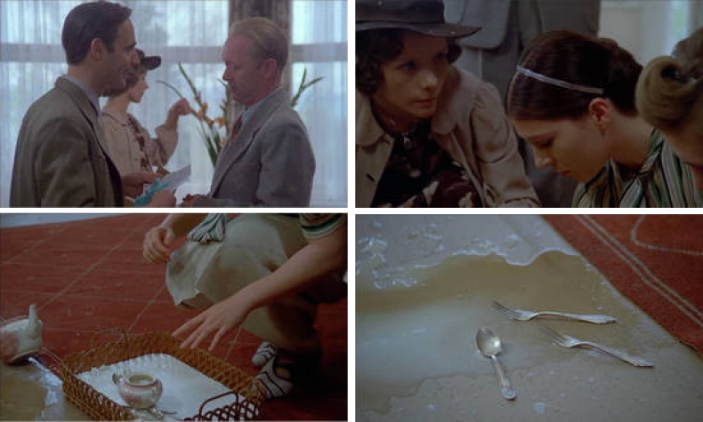 Die Mise en scène rückt das ‚Hintergrundrauschen’ des Radios thematisch ins Zentrum der Szene. Über Dialog und Bildgestaltung erfolgt eine Auseinandersetzung mit dem dadurch evozierten historischen Kontext und der nationalsozialistischen Ideologie. In anderen Szenen hat die Tonspur neben dieser reflexiven Dimension zudem eine emotionalisierende Funktion; sie setzt den/die Zuschauer/in bzw. Zuhörer/in dem Schock der Vergangenheit aus.