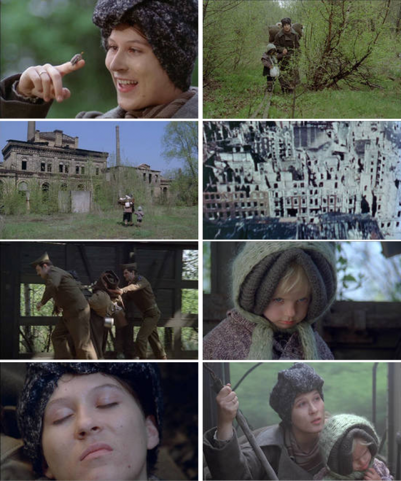 Lene erzählt das Märchen ihrer Tochter, während sie nach Kriegsende durch Wald und Ruinen in die Stadt zurückkehren. Die Erzählung des Märchens durch die Mutter wird visuell verbunden mit dem ‚Sehen lernen’ der Tochter, die mit der Gewalt des Krieges konfrontiert wird: den zerstörten Fabriken, einer verwesten Leiche am Wegesrand und der Vergewaltigung der Mutter durch amerikanische Soldaten. Das Erzählen des Märchens hat offenbar die Funktion, dem Kind bei der Verarbeitung dieser Gewalterfahrung zu helfen, ihm Deutungs- und Lösungsangebote zu vermitteln. Weitergabe wird hier als der Versuch vorgeführt, inkommensurable Erfahrungen in sinnhafte Erzählungen zu überführen (Kosta: 143). Zugleich wird gezeigt, dass die Geschichten die Realität nicht einholen können und dass die Gewalterfahrung, die Erfahrung der Frau zum Objekt gemacht zu werden, mit dem Versuch der Rationalisierung („So ist das im Krieg kleines Mädchen: die Sieger nehmen die Frauen und die Sachen“) ebenfalls an die nachkommende Generation der Töchter weitergegeben wird.17 Was die Tochter – die die Regisseurin selbst repräsentiert – mit diesem Erbe macht und wie sie sich – schreibend oder filmend – daraus befreit, kann als eigentlicher Subtext des Films verstanden werden.