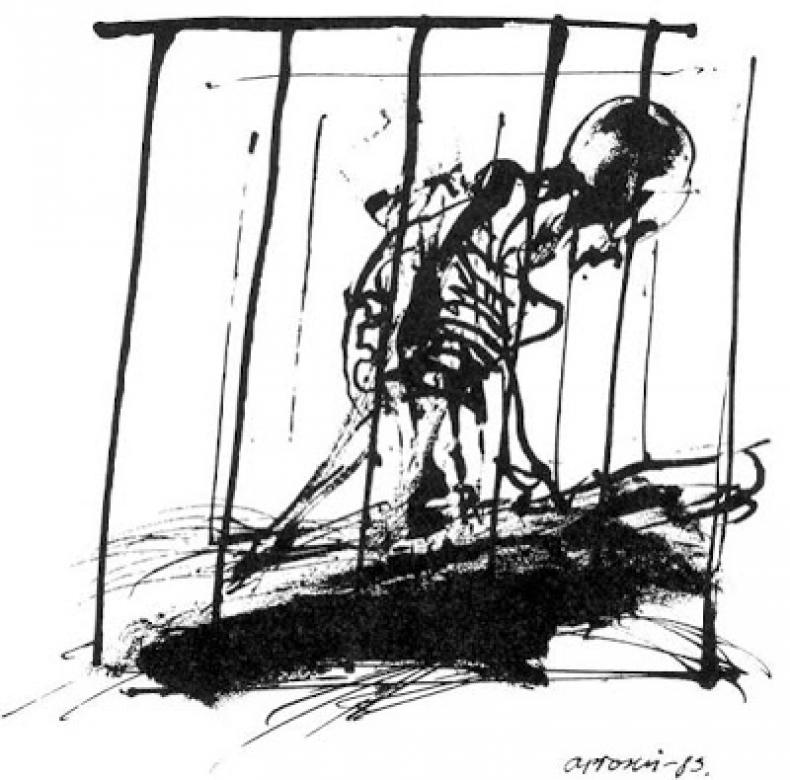 "Mein nervöser Zustand" - so heißt es bei Hamsun – "hatte sich verschlimmert, und ich versuchte, mich aus allen Kräften zu wehren, aber es half nichts. Da saß ich, eine Beute der seltsamsten Phantasien, mich selbst beschwichtigend, Wiegenlieder summend und schwitzend von der Anstrengung, mich zur Ruhe zu bringen. Ich starrte in die Dunkelheit hinaus, ich hatte niemals in meinem Leben eine solche Finsternis gesehen. Es war kein Zweifel darüber, dass ich mich hier einer eigenen Art von Finsternis gegenüber befand, einem desperaten Element, auf das niemand vorher geachtet hatte. Die lächerlichsten Gedanken beschäftigten mich, und jedes Ding erschreckte mich. Ein kleines Loch in der Wand bei meinem Bett nahm mich sehr in Anspruch. Ein Loch von einem Nagel, das ich in der Wand finde, ein Zeichen in der Mauer. Ich fühle es an, blase hinein und versuche seine Tiefe zu erraten. Das war nicht irgendein unschuldiges Loch, durchaus nicht; es war ein ganz tückisches und geheimnisvolles Loch, vor dem ich mich hüten musste. Und von dem Gedanken an dieses Loch besessen, ganz außer mir vor Neugierde und Furcht, musste ich zuletzt vom Bett aufstehen und nach meinem Federmesser suchen, um die Tiefe zu messen und mich zu vergewissern, dass es nicht ganz in die Nebenzelle hinüberführte." (Hamsun 1982: 57)