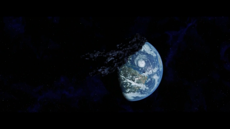 One of the best (or, should I say ‘the worst’) examples of this type of gender representation can be found in ARMAGEDDON, one of two Hollywood films released in 1998 about the “Earth being menaced by big hunks of rock from Space” (Ferris). In the case of Armageddon, the source of danger is an asteroid roughly equal to “the size of Texas”, which is headed straight for us.1 The film’s misogynistic tone is established early on, when the asteroid is spotted by an amateur astronomer named Karl just when his shrewish wife Dottie is complaining that his “Stouffer’s pot pie is getting cold”. Note that Stouffer’s pot pie is something you simply heat up in the oven, requiring no cooking skills. When Karl tries to tell her that he’s busy looking at something interesting, and asks if she could retrieve his telephone book with the names of NASA scientists, she replies sarcastically, “Am I wearing a sign that says ‘Karl’s Slave’?” Apparently accustomed to Dottie’s insolence, he shouts at her, “Get the book! Get the book!” And apparently just as accustomed to Karl’s anger, Dottie gets the book. As the person who was the first to discover this particular asteroid, Karl is given the privilege of naming it; so immediately after showing particles of the asteroid destroying several Manhattan landmarks, the film cuts to Karl telling NASA without a trace of irony, “I want to name it after my wife, Dottie. She’s a vicious life-sucking bitch from which there’s no escape”.