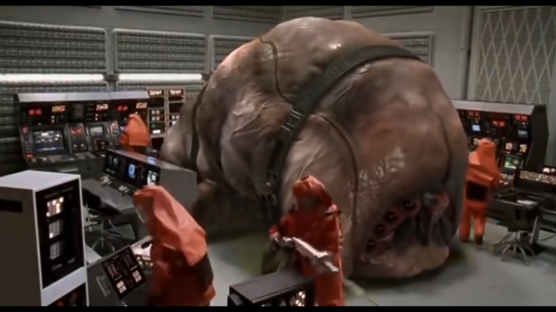 Similar anti-feminist messages are communicated both narratively and visually in STARSHIP TROOPERS, as the earth is endangered by an invading army of intelligent Bugs. Although the “male and female [human] soldiers fight, shower, and bunk together with comradely nonchalance” (O’Hehir), the most capable females, such as Dizzy Flores (Dina Meyer) are eliminated along the way, while the men – notably Sgt. Zim (Clancy Brown) and Lt. Johnny Rico (Casper Van Dien) – achieve military victory by capturing the Brain Bug in a climactic battle.