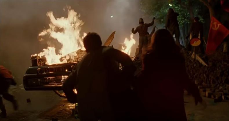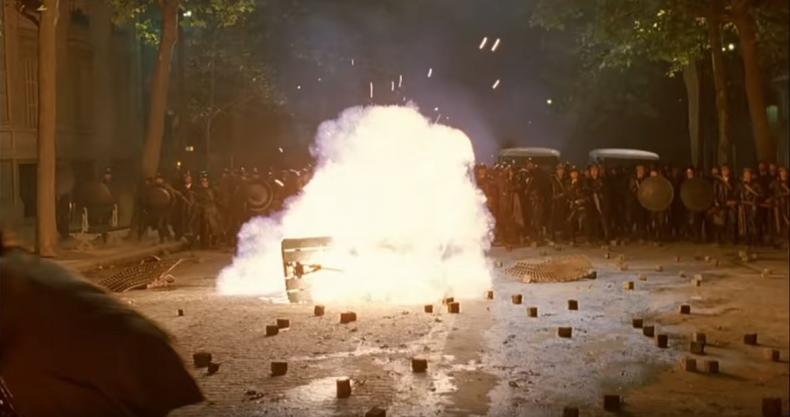 Wenig später tobt vor dem Saal eine Schlacht. Polizisten schlagen auf Kinogänger ein, diese schlagen zurück, fliehen schließlich vor der Übermacht, zumindest für den Tag.